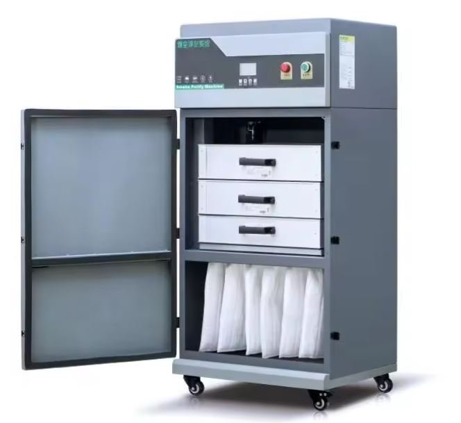 - It has bag filter to arrest airborne dust particles and carbon filter layer to remove toxic chemicals from the air stream.